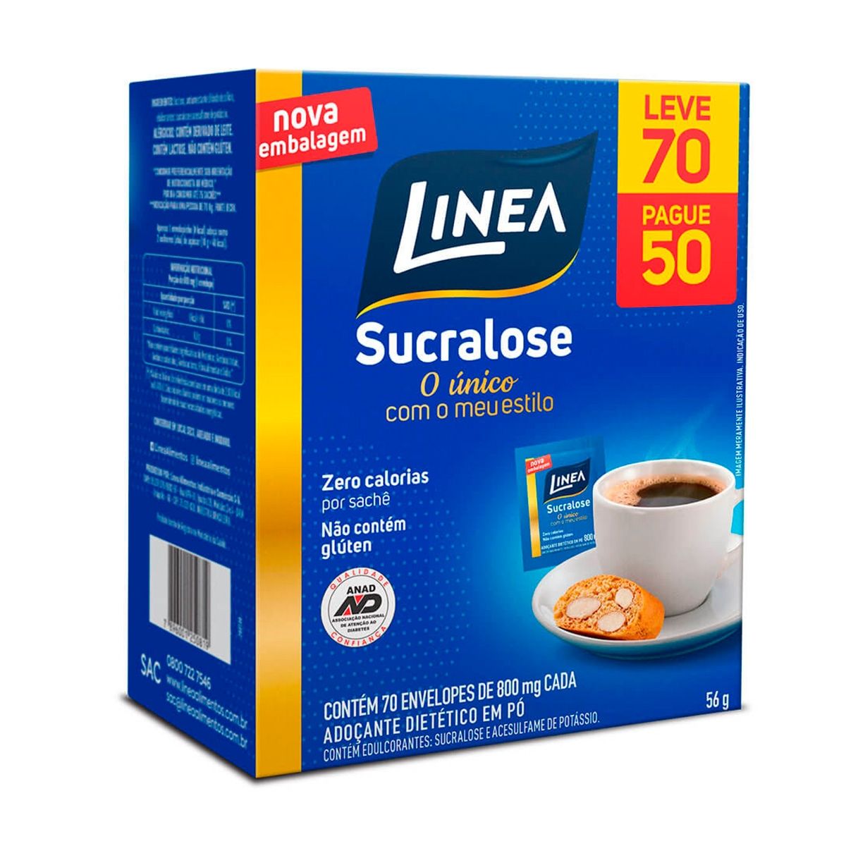 Adoçante Pó Linea Sucralose Com 70 Envelopes De 800mg Cada