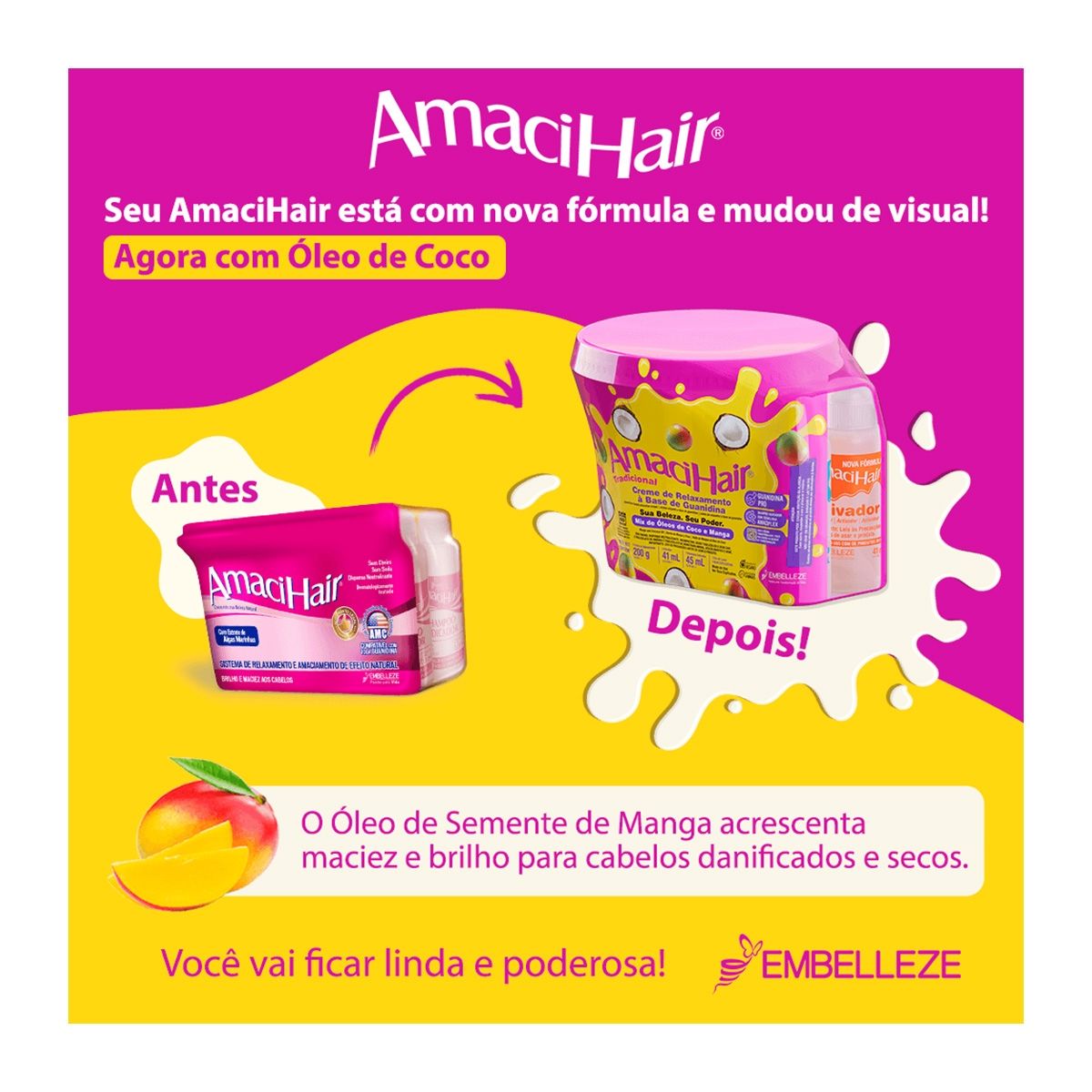 Com AmaciHair você vai poder reinventar seus cachos. Dê liberdade para suas ondas. Conquiste sua beleza natural. Reinvente. Remodele. Ouse. Curta o movimento que AmaciHair vai dar para os seus cabelos.