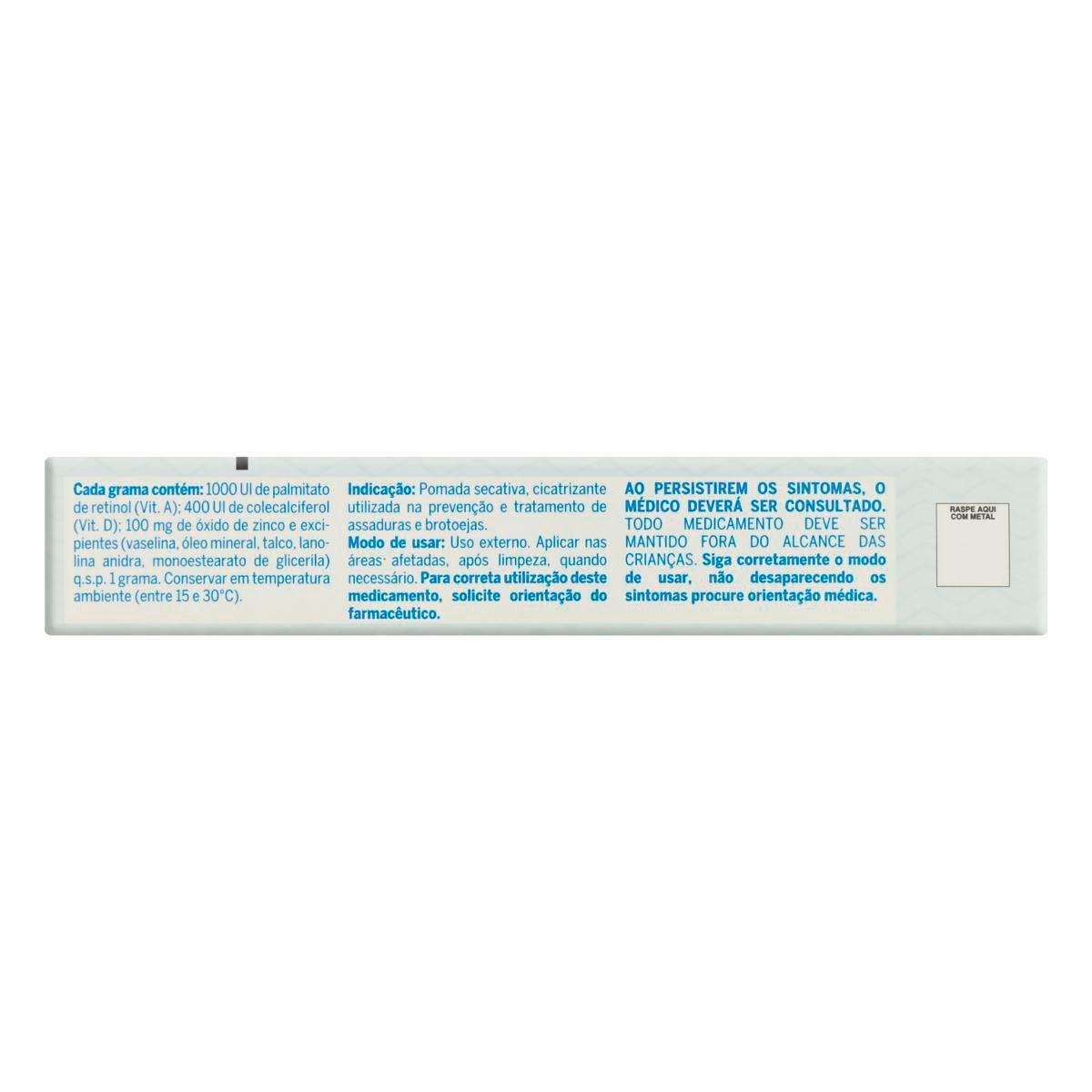 A pomada protege a pele do bebê contra irritações e assaduras, formando uma barreira protetora com óxido de zinco e vitaminas A e D. -