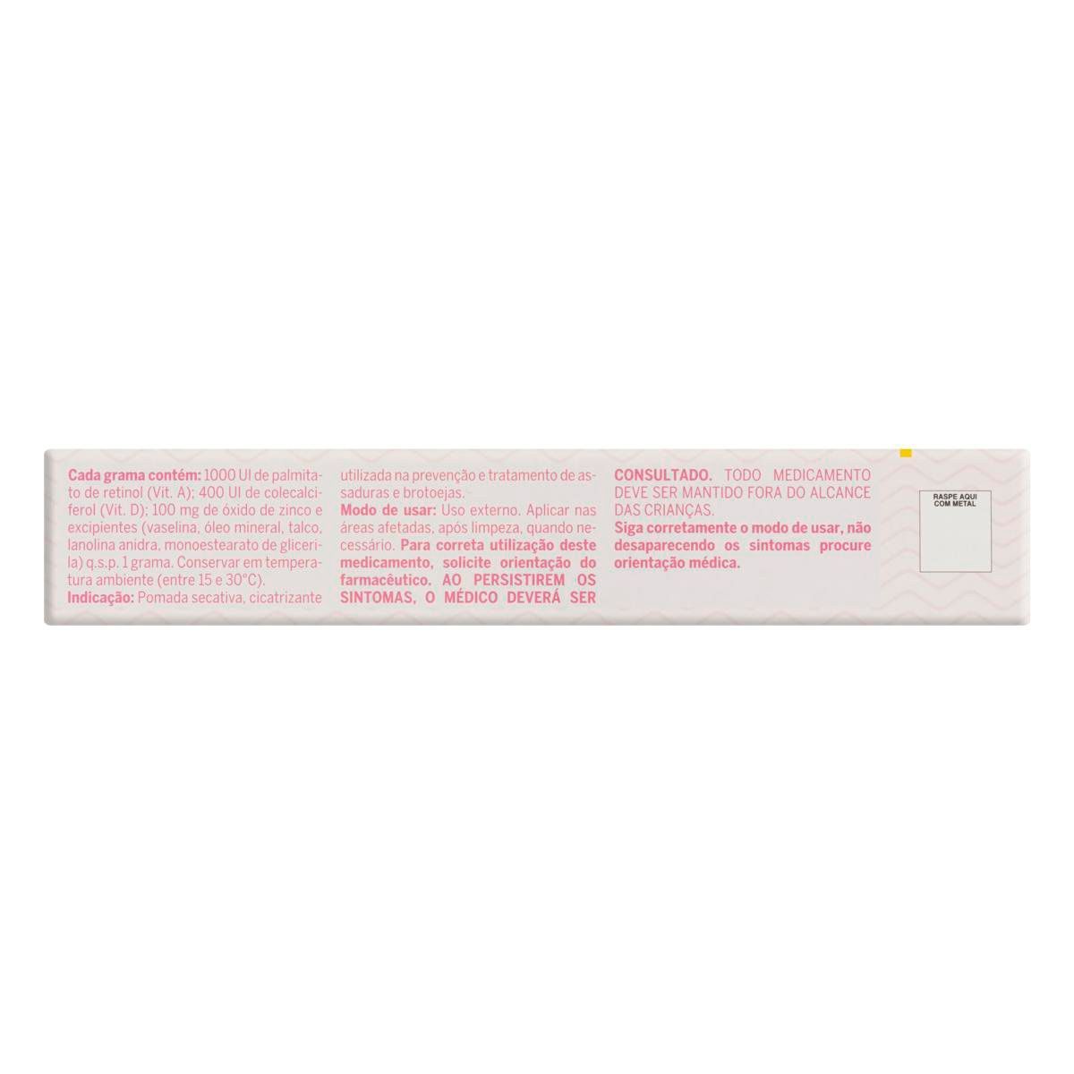 A pomada contém palmitato de retinol, colecalciferol e óxido de zinco, que formam uma barreira protetora. -