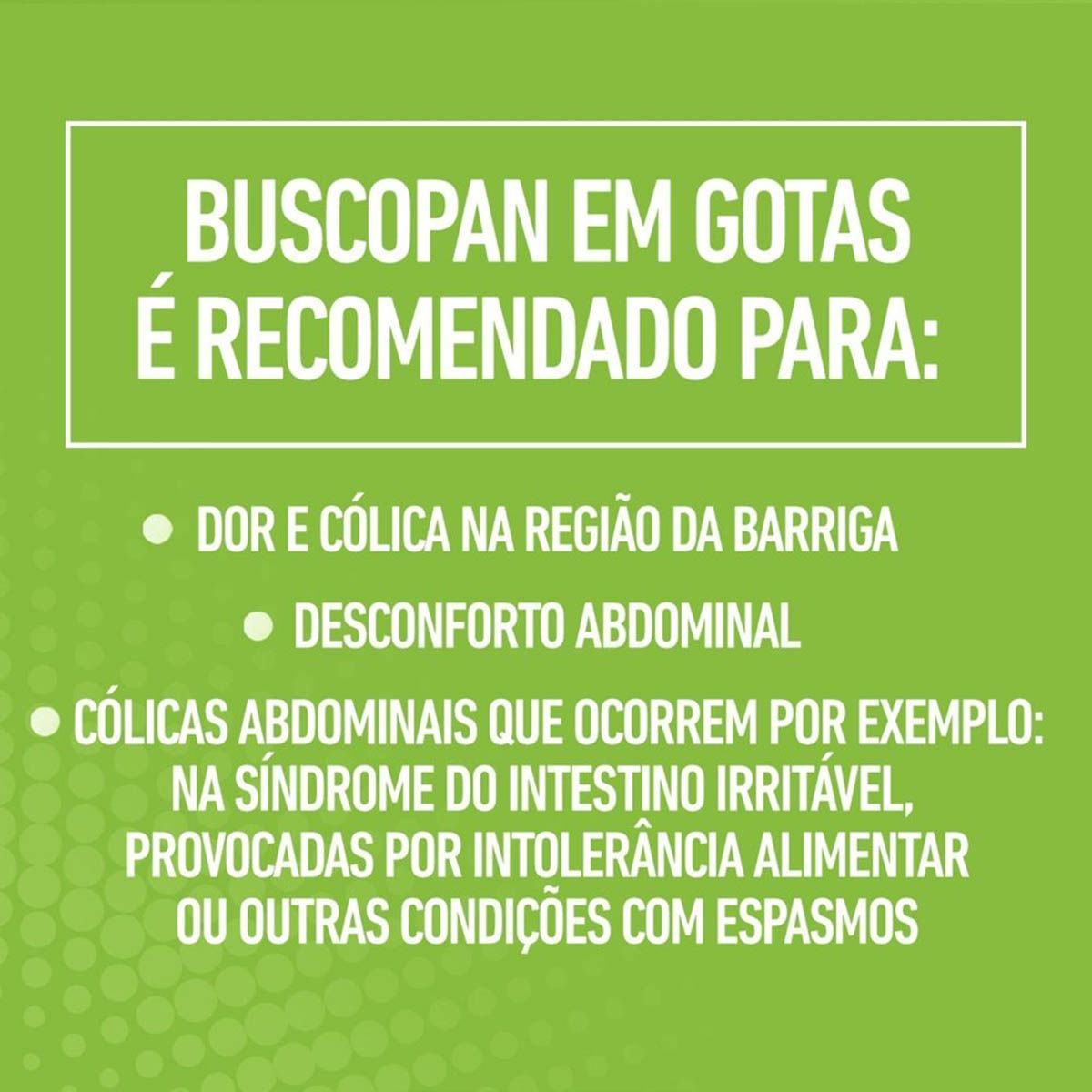 Este medicamento contém 140 mg de sódio por dose diária máxima recomendada. Portanto, se você segue uma dieta controlada de sódio, deve usar Buscopan gotas com precaução.
