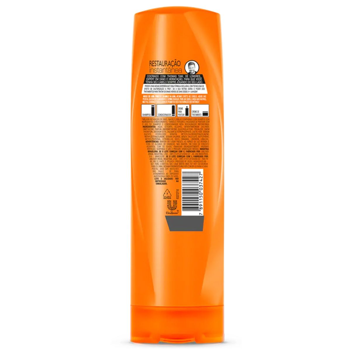 O condicionador possui max cálcio e queratina que eliminam danos visíveis, reforçam os fios e os restauram desde a primeira lavagem. -