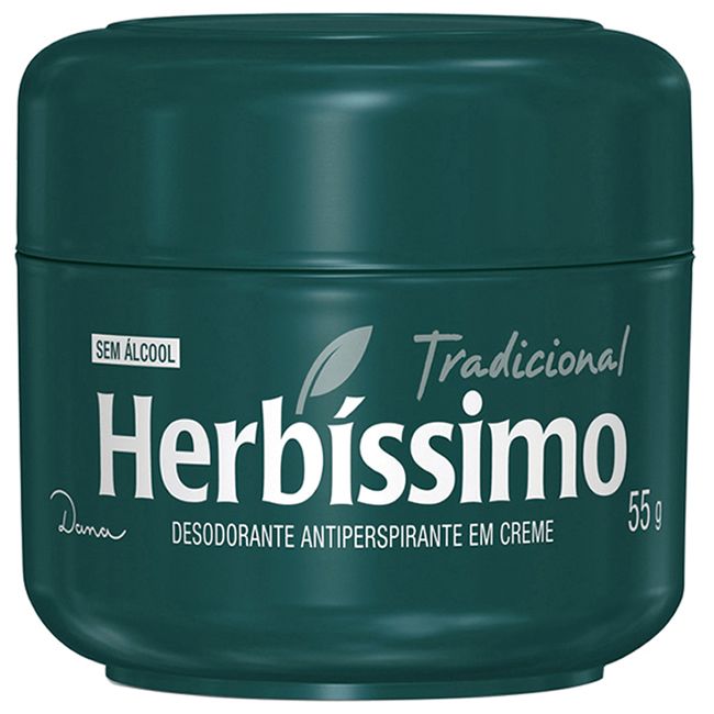 O Desodorante Herbíssimo Creme Tradicional possui 55g, sendo compacto e fácil de levar em qualquer bolsa ou mochila. -