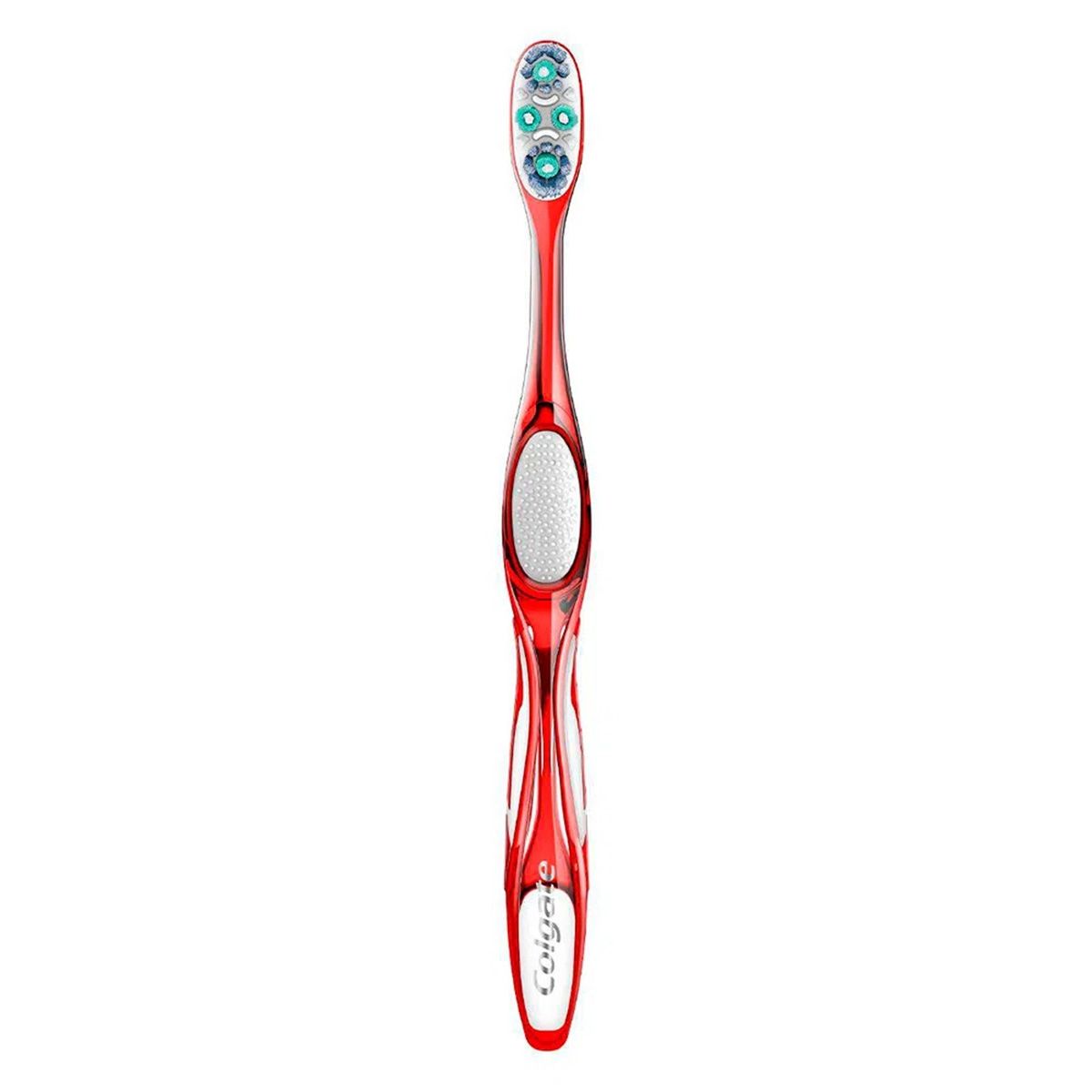 Escova Dental Colgate 360º Luminous White possui cerdas macias interdentais e polidoras que promovem uma limpeza completa de 360° ao redor dos dentes. Possui também limpador de língua e bochechas.
