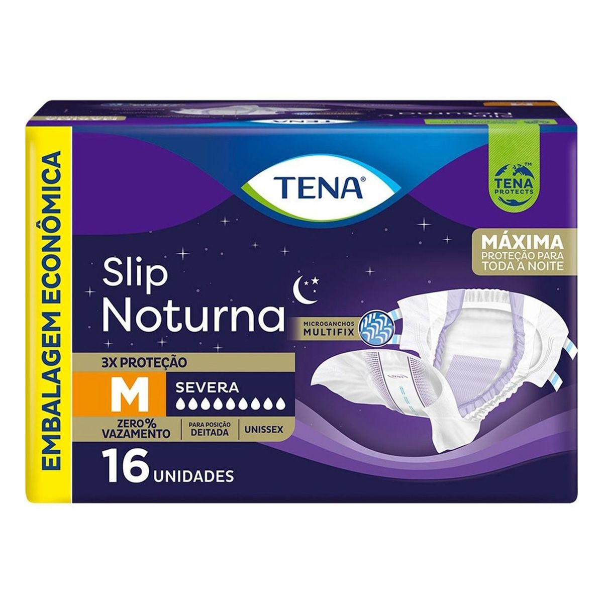 Indicada para incontinência urinária severa, a fralda geriátrica Tena Slip Noturna oferece máxima proteção e 0% de vazamento durante toda a noite, proporcionando suavidade e menos ruído, além de contar com uma cobertura externa similar ao tecido.