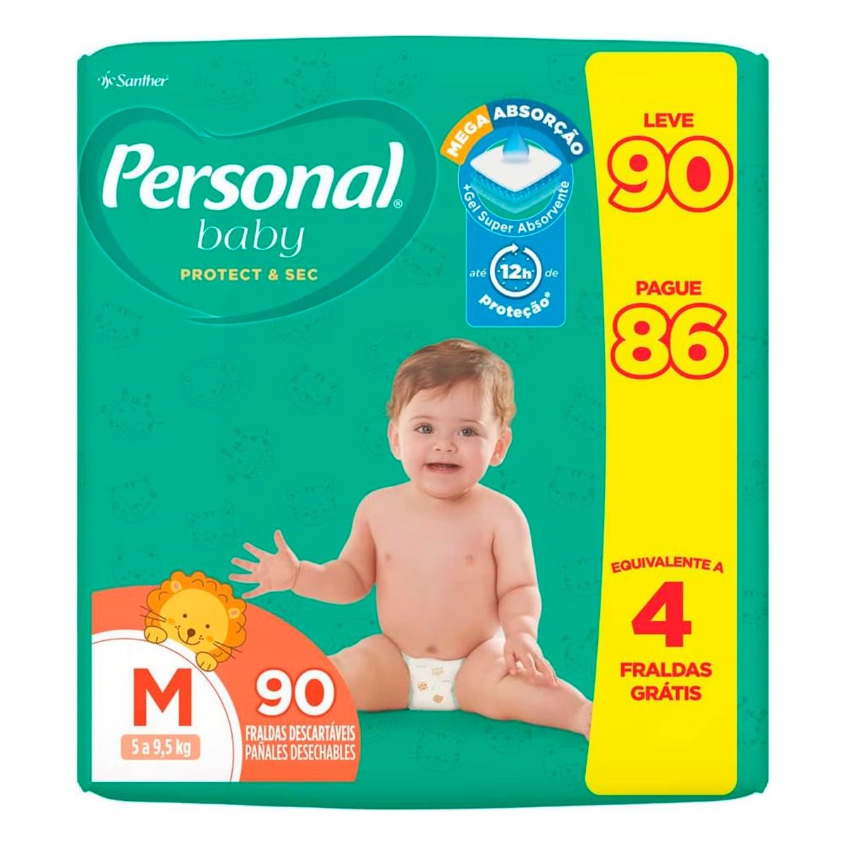 Fralda Personal Baby Protect e Sec Tamanho M Com 90 Fraldas
