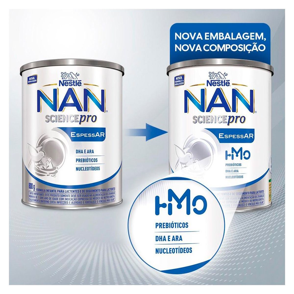 NAN Science Pro EspessAR é uma fórmula infantil para lactentes e de seguimento para lactentes, de 0 a 12 meses de idade, com Prebióticos, 2´FL, DHA e ARA e Nucleotídeos.