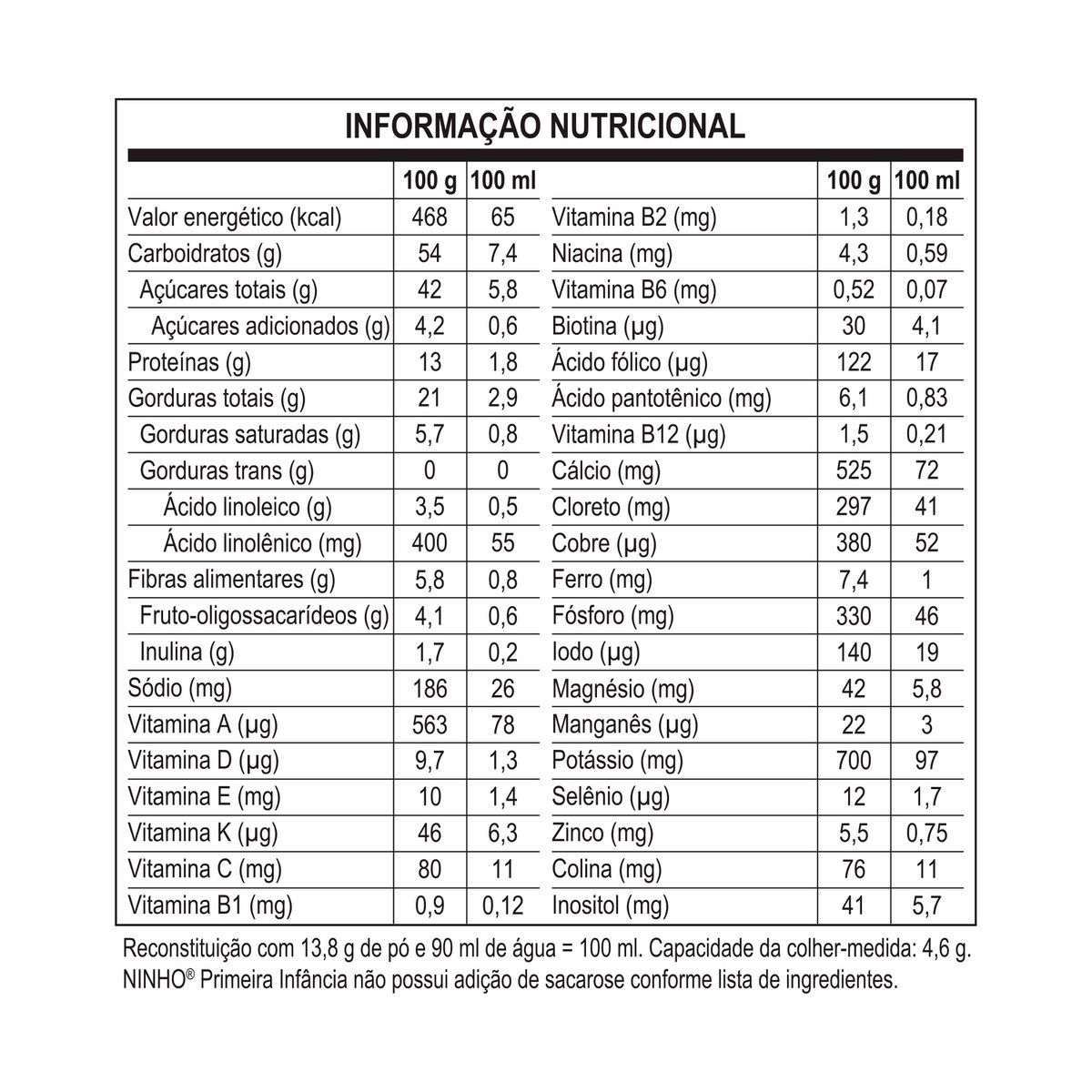 Quais são os principais nutrientes do NINHO Primeira Infância?