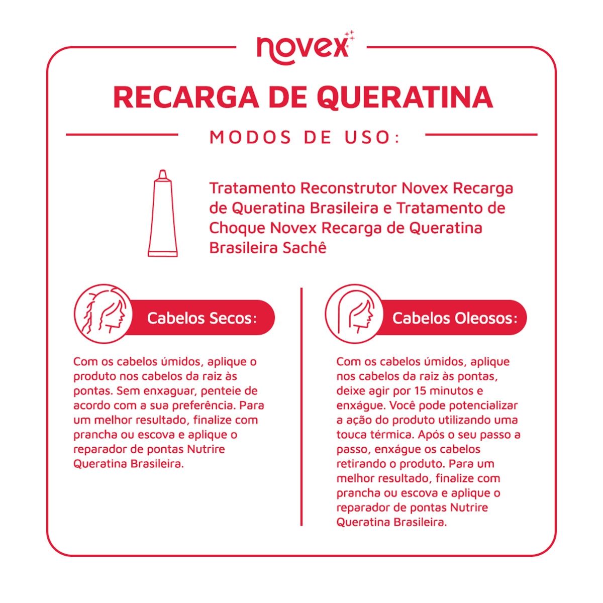 Como devo aplicar o Tratamento Reconstrutor Novex Recarga de Queratina Brasileira 80G?