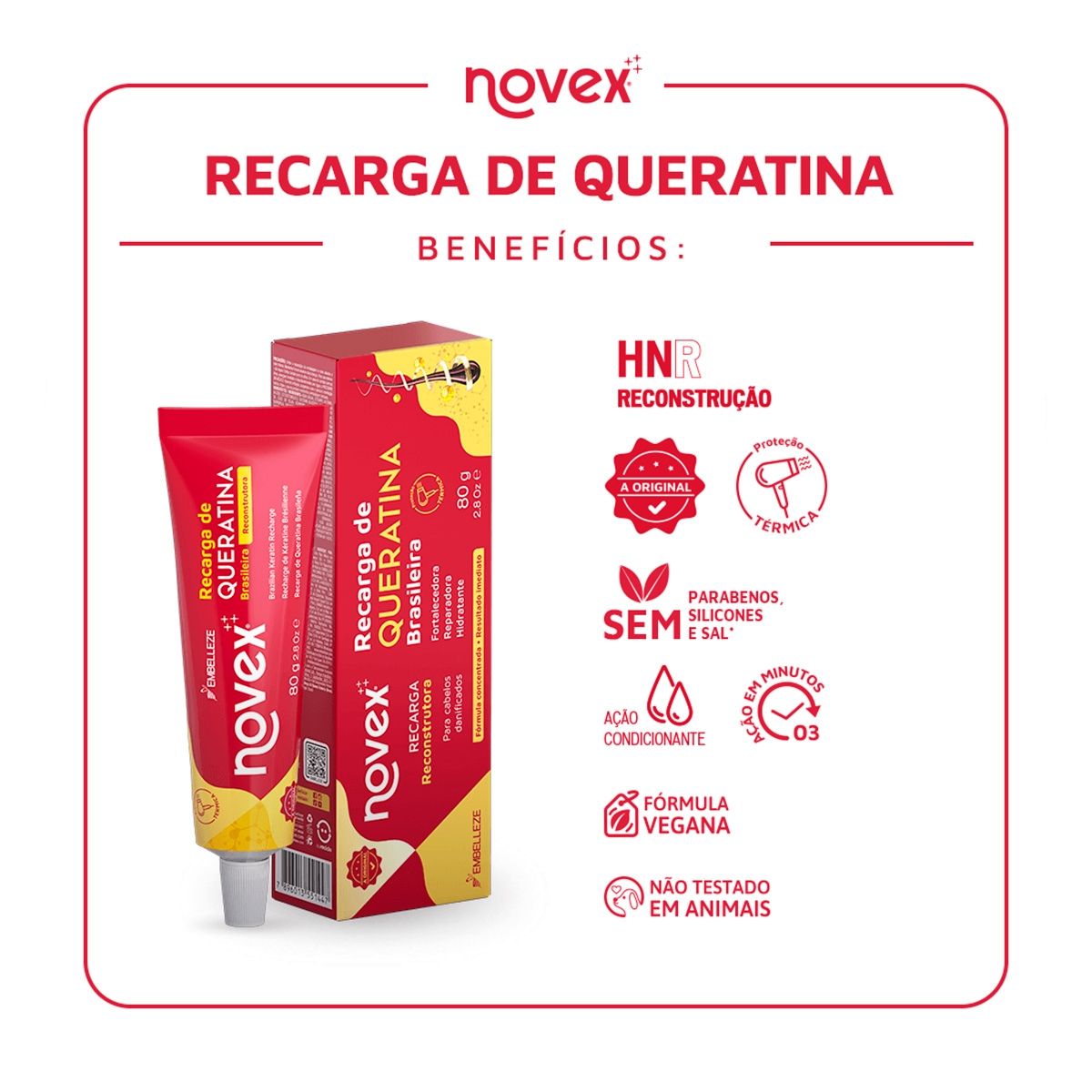 Tratamento Reconstrutor Novex Recarga de Queratina Brasileira 80G