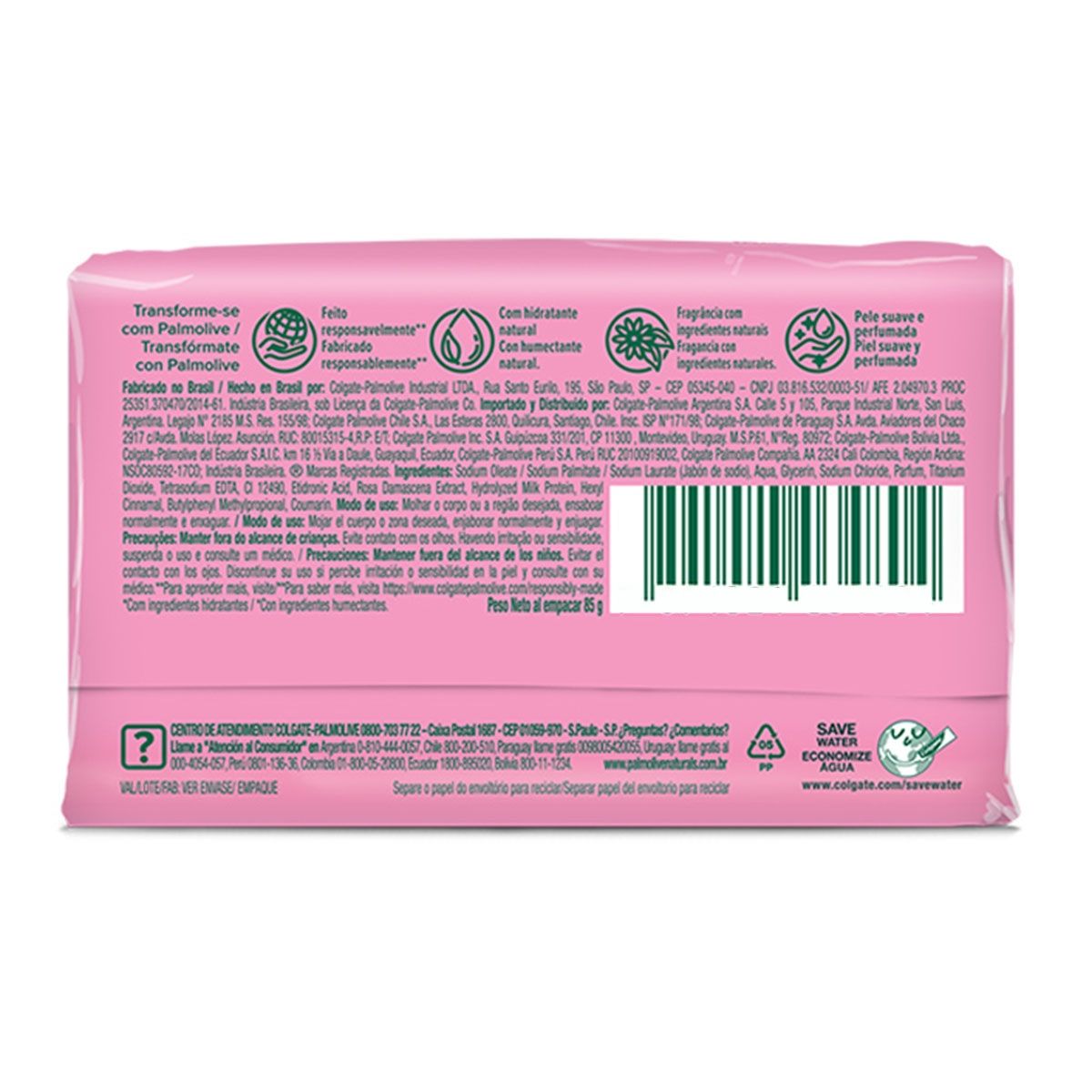 O Sabonete Palmolive Naturals contém ingredientes 100% de origem natural, incluindo leite e pétalas de rosa, que proporcionam uma pele macia e perfumada. -