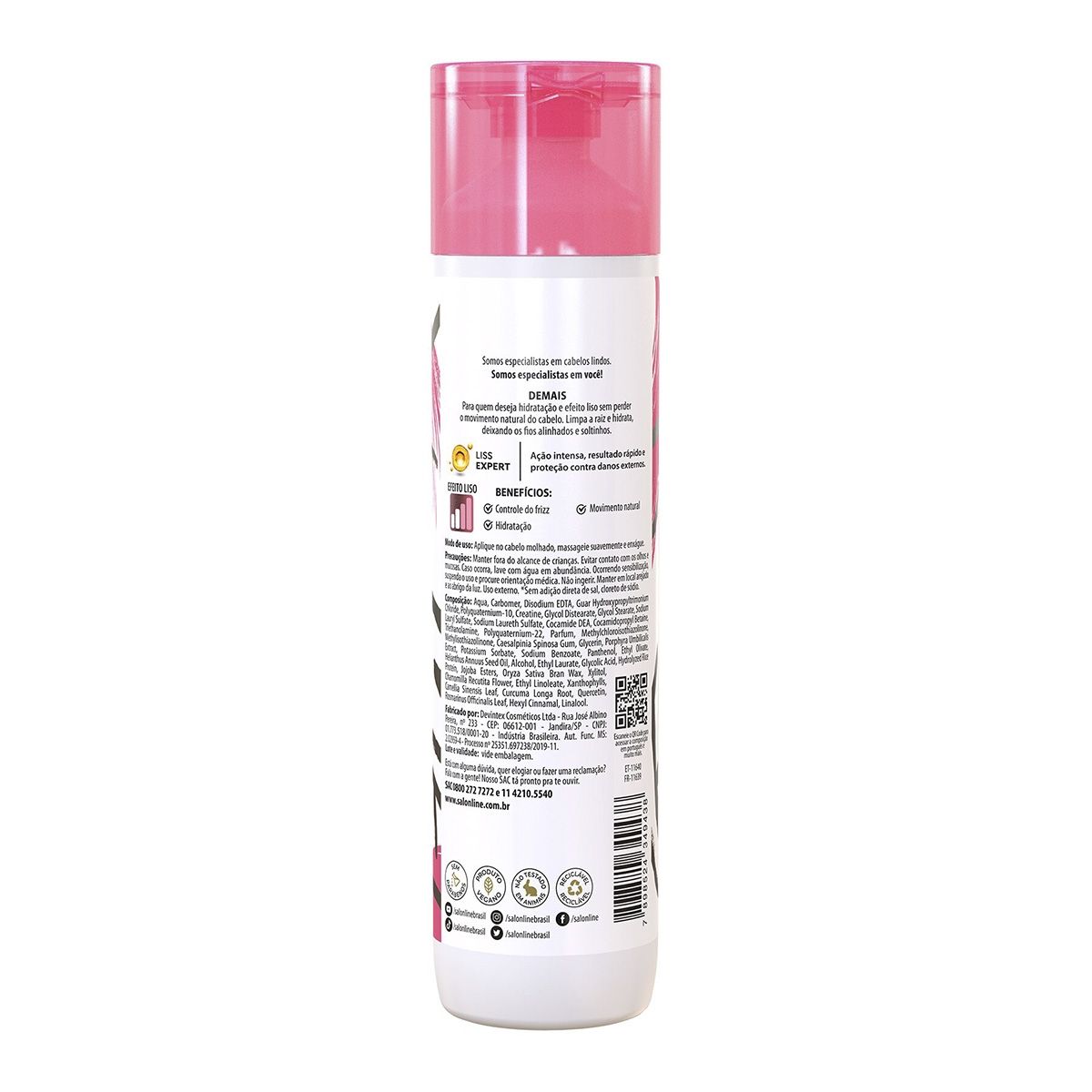 O Shampoo Meu Liso Demais garante limpeza desde a raiz, sela as pontas e elimina totalmente o frizz, garantindo hidratação profunda para os cabelos sem perder o movimento natural dos fios.